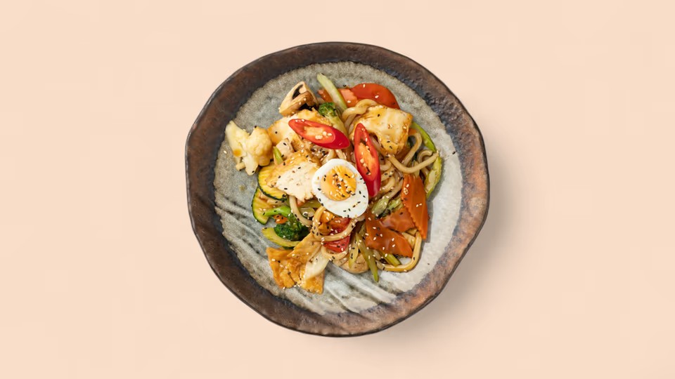 mit verschiedenem Gemüse und einem halben weich gekochtem Ei